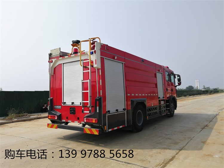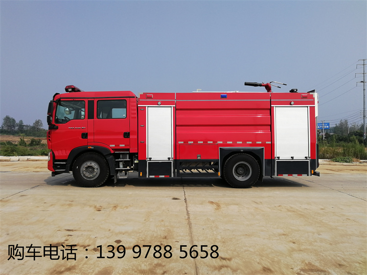 豪沃7噸泡沫消防車(chē)整車(chē)型號(hào):JDF5200GXFPM70/Z6,水罐容積6.1立方米,泡沫容積1.05立方米。軸距4600mm