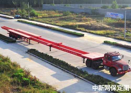 中新河北網(wǎng)保定10月18日電 保定曲陽縣委宣傳部18日透露,河北曲陽華運順通專用汽車制造有限公司開發(fā)的大型“風電葉片運輸車”在曲陽下線。此車的下線,成為中國風電葉片運輸車行業(yè)中的典范。